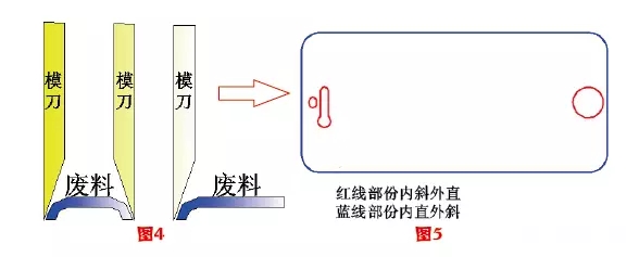 如圖4、圖5, 可以用單鋒刀, 刀刃朝廢料方向, 這樣壓痕就可以往廢料那邊擠壓。
