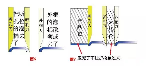 如圖6,將廢料部分的墊刀泡棉去掉或是改薄,為壓痕騰出空間。