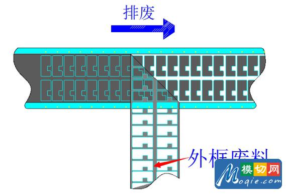 2 .由于石墨片的跳步會產生變化,在設計模具需要鏈接線時,應該把步距的變化考慮進去(如模具圖第三把刀MOQIE-012-C在設計時候就把分條線加長,以便步距變大時能鏈接起來)。