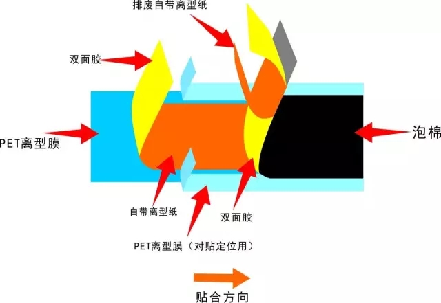 b、排廢雙面膠自帶離型紙,貼合網紗
