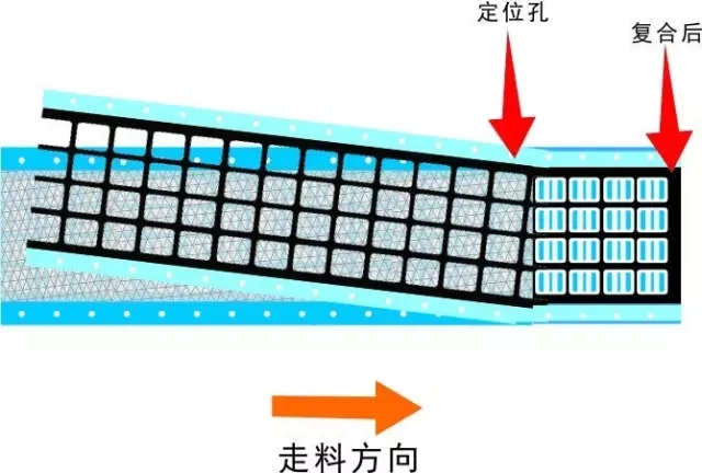 復合網紗,就是把已復合材料中的雙面膠離型紙排掉,把網紗加到原來離型紙層。在復合材料時兩邊復合膠條就是為了這里復合網紗的定位對貼。