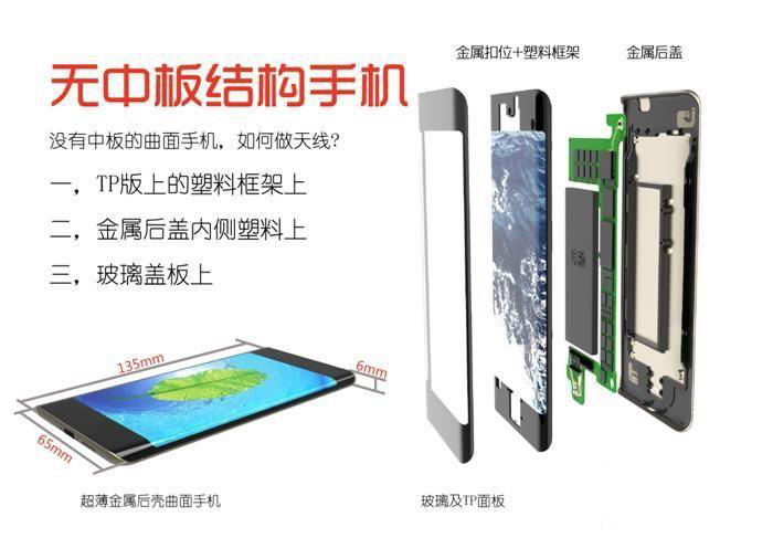 手機(jī)超薄化后,為了加強(qiáng)結(jié)構(gòu)強(qiáng)度,會采用金屬+塑膠的中板,這類中板中塑膠部分是天線的極佳的載體。