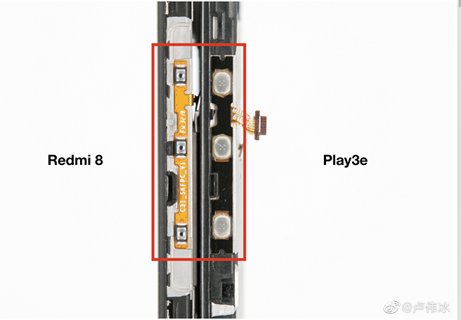為了宣傳新品,小米集團副總裁紅米Redmi 品牌總經理盧偉冰特地放出了Redmi 8與榮耀Play3e的拆解圖。