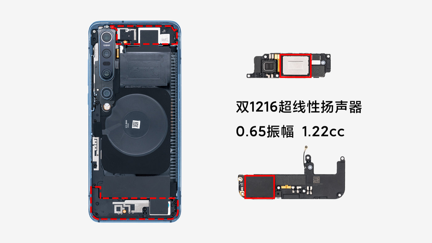 頂部和底部對稱排列雙1216超線性揚聲器,業(yè)內(nèi)罕見的7磁鋼設(shè)計發(fā)聲單元,1.22cc大腔體,讓小米10 Pro的立體聲更加震撼,相較前代響度提升100% 。