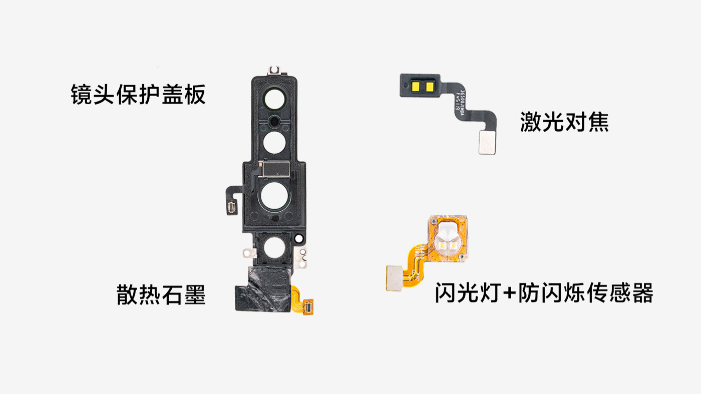 后置相機保護蓋板上集成了激光對焦模組,在提升暗光環(huán)境對焦速度的同時,還能輔助判斷環(huán)境AWB,讓拍照的白平衡更準(zhǔn)更接近人眼所見。閃光燈上方加入了防閃爍傳感器,可以檢測光源的閃爍頻率,減少室內(nèi)環(huán)境下拍攝的頻閃。