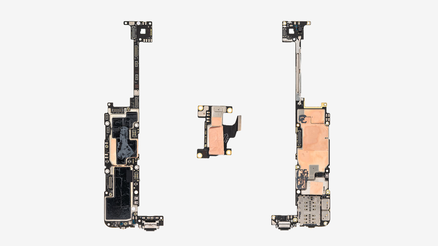 拆開左側(cè)的主板蓋板,主板和電池呈左右分布。主板區(qū)采用雙層主板的設(shè)計,主板上方堆疊一塊小板。右側(cè)4500mAh大容量電池占據(jù)內(nèi)部大半空間,通過易撕貼固定在中框上。