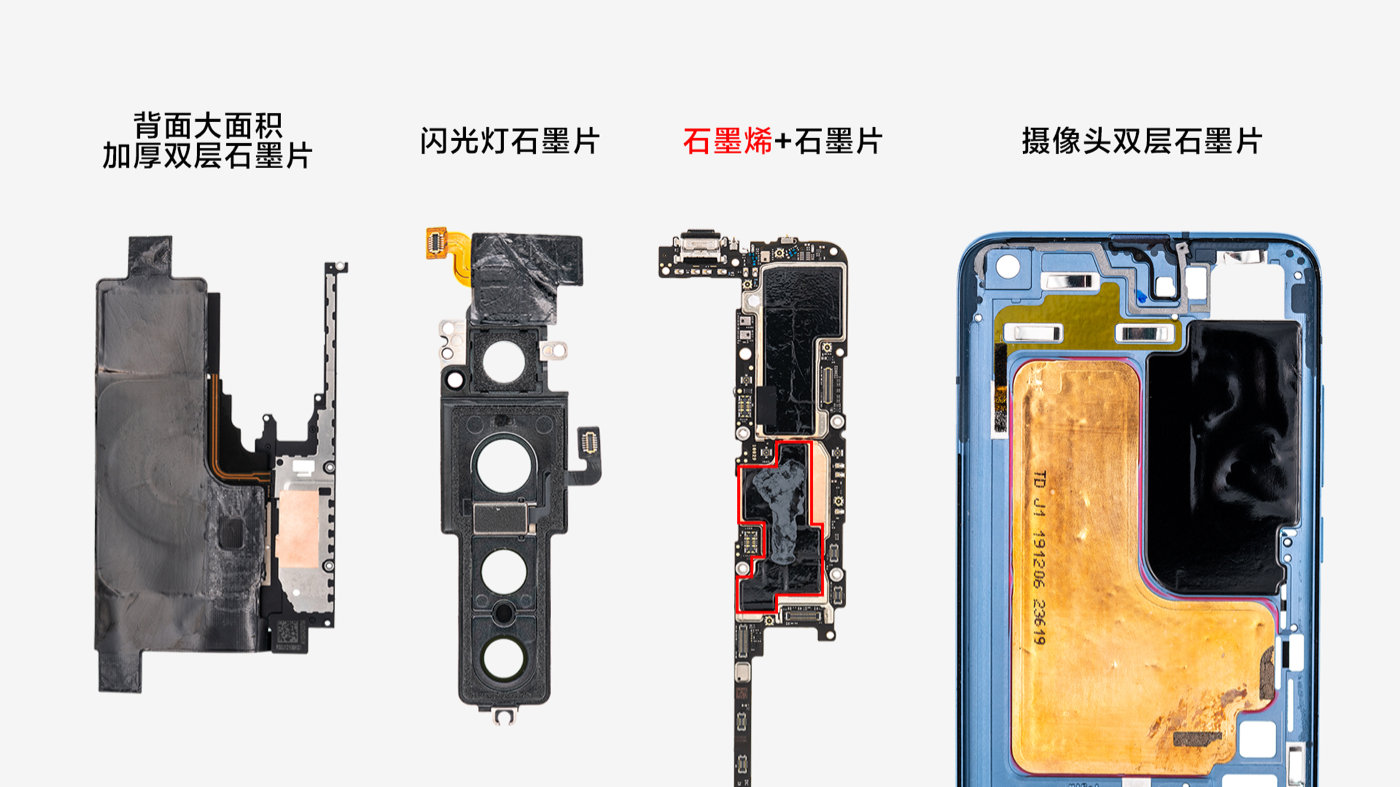小米10 Pro內(nèi)置了3000mm2超大面積VC均熱板,面積是友商旗艦VC的3倍左右。同時覆蓋了SoC、電源管理芯片和5G芯片區(qū)域,并且延伸到整個電池倉,有效提高核心熱量的散熱能力。