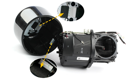 擰下頂部4顆螺絲和固定音腔模塊的2顆螺絲,頂部麥克風板與主板之間采用ZIF接口連接,接口處泡棉防護。斷開頂部麥克風板和主板的連接軟板拆下音腔模塊。在頂部主板的接口處同樣有泡棉防護。