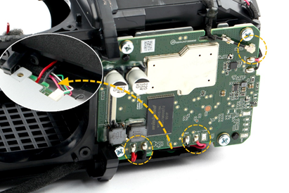 由于主板與兩個天線之間都有同軸線連接,并且與揚聲器和音箱底部電源板也分別采用插針式接口和錫焊方式連接,所以擰下固定主板的4顆螺絲后,需要斷開各個接口以及焊點,才能將主板取下。