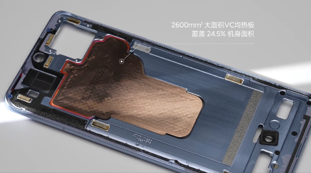 蓋板還有著大面積散熱石墨,幾乎覆蓋了整個機身,撕開之后是2600mm 大面積VC均熱板,覆蓋24.5%機身面積。