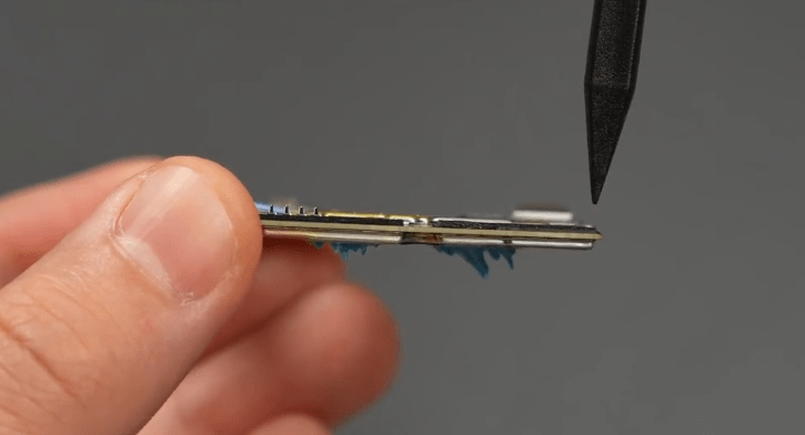 拆解屏幕時由于其邊框比其他折疊屏更緊,粘膠力度非常大,因而遭遇了翻車。