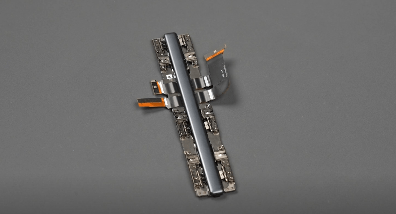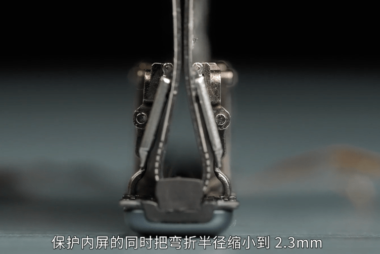 鉸鏈部分阻力結構尺寸比OPPO和三星更小,因此為了實現開合過程的懸停,采用了更高強度的航空鋼材。