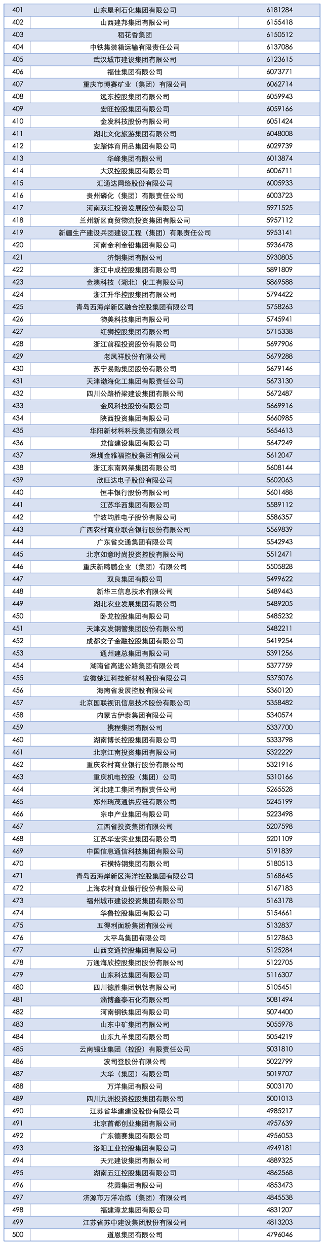 9月15日,中國企業(yè)聯(lián)合會、中國企業(yè)家協(xié)會連續(xù)第24次向社會發(fā)布“中國企業(yè)500強”榜單顯示,國家電網(wǎng)有限公司、中國石油天然氣集團有限公司、中國石油化工集團有限公司分列榜單前3位。