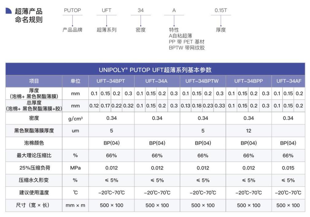 PUTOP超薄系列泡棉專門為超薄化、一體化、輕量化的智能移動設備量身定制,該系列具有良好的密封防塵、遮光及緩沖性能。尤其適用于OLED屏幕。